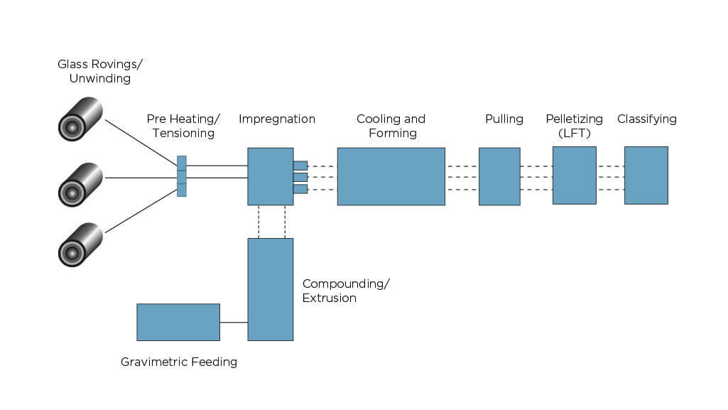 典型的拉挤法LFT长纤维热塑性塑料生产线