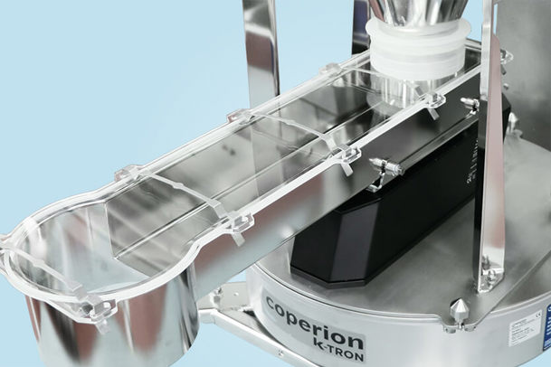 Kohäsive Schüttgüter, wie Titandioxid, Farbstoffe und Kupferkonzentrate, stellen höhere Anforderungen an den Dosierprozess. Sie neigen insbesondere zu Brückenbildung in Trichtern und lagern sich an den Geräteoberflächen an. Oft lassen sich solche Materialien am besten mit einem Doppelschnecken-Dosierer mit Fließhilfe, wie dem Coperion K-Tron ActiFlow, verarbeiten.