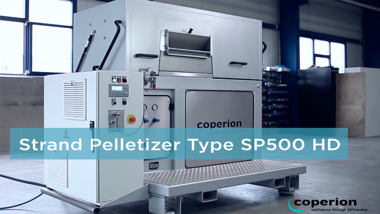 The strand pelletizer SP HD of Coperion Pelletizing Technology is designed to meet very demanding tasks, e.g. the pelletizing of highly abrasive, reinforced products. With a working width of up to 700 mm the strand pelletizer SP HD reaches throughput rates of up to 6,300 kg/h.