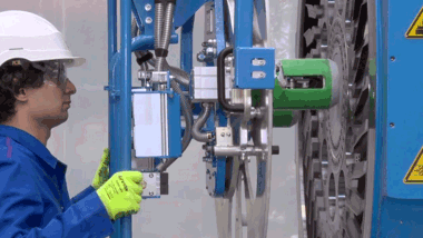 Coperion Manipulator: mounting and dismounting of splash guard and knife rotor in less than 10 minutes.