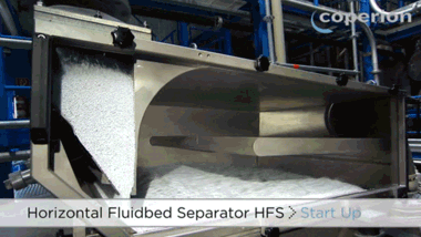 Coperion's Horizontal Fluidbed Separator (HFS) is an efficient, room-saving elutriator which offers superb fines separation performance, over a wide variety of compounded products. It is available for small throughput rates starting with approx. 800 kg/h.