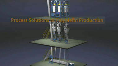3-D animation of a Coperion process solution in a polyolefin production. Coperion is expert for high-capacity polyolefin manufacturing plants. Whether it is a matter of continuously stabilizing, homogenizing and pelletizing LLDPE, HDPE or PP powder or concentrating a melt solution, we have unique know-how and a wealth of experience in providing high-performance compounding systems as well as bulk material handling plants for the polyolefin industry.