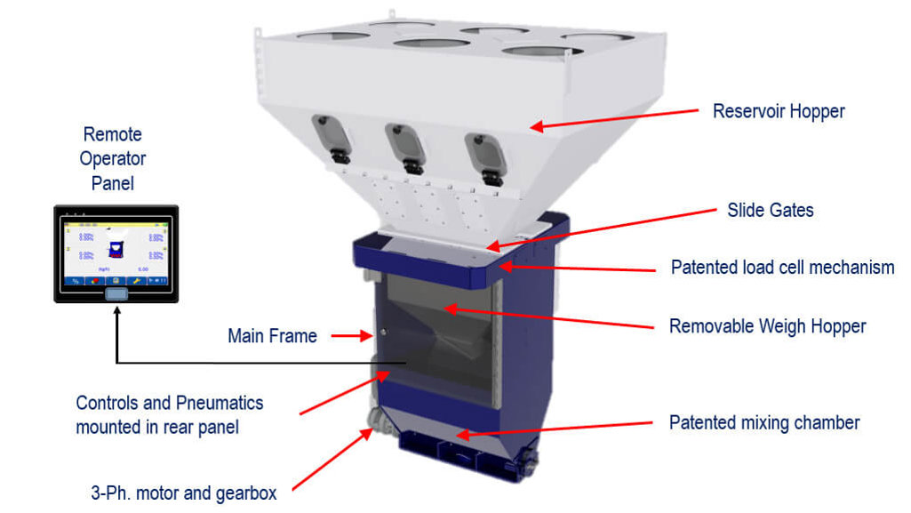 Compact batch blenders for feeding up to 8 ingredients in your plastics compounding process