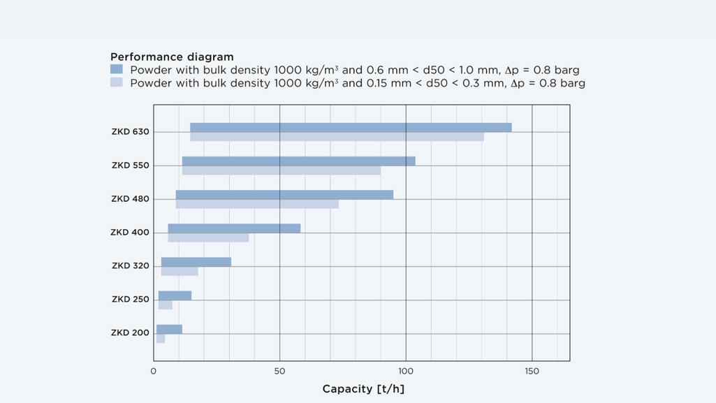 The ZKD rotary valve is built around a robust, solid housing with rectangular flange connections, giving it the strength and stability needed for demanding industrial applications. This durable design not only extends the valve’s service life but also makes installation and integration into existing systems straightforward. The ZKD also handles fibrous bulk materials with ease, providing reliable feeding performance even in challenging conditions. Equipped with a feeding shoe, it efficiently introduces bulk materials into pneumatic conveying systems at pressures up to 1.5 barg (21 psi). Suitable for industries such as plastics, chemicals, food, and minerals, the ZKD delivers dependable operation tailored to the needs of modern processing environments.