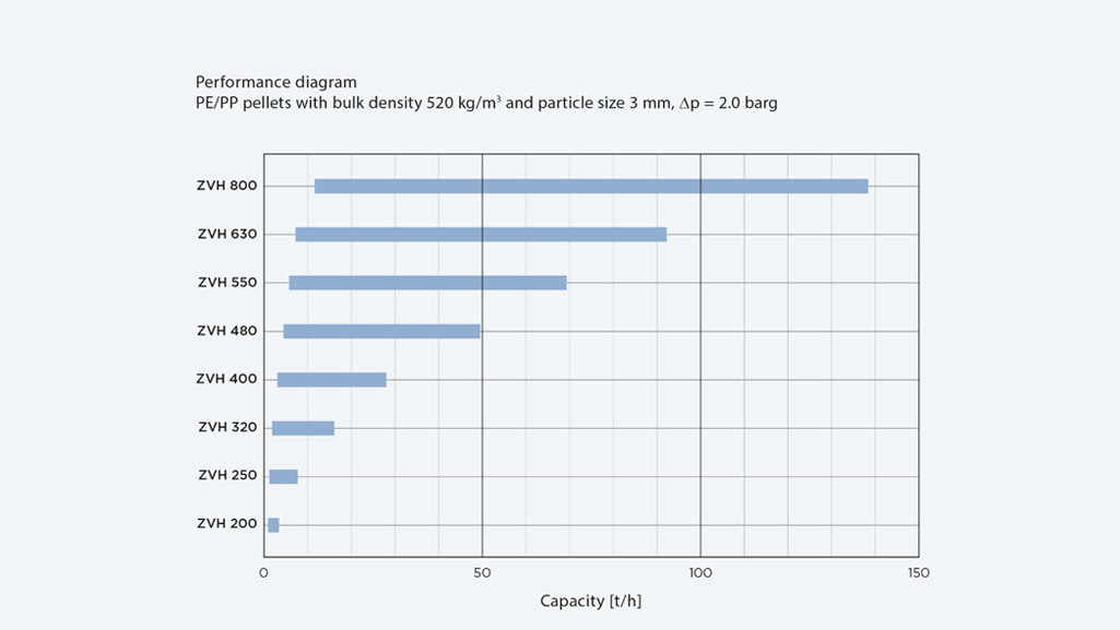 The Rotary Valve ZVH is a high-pressure discharging valve designed specifically for granular products. Engineered to optimize capacity, it features an ideal ratio of rotor volume to inlet cross-section, ensuring efficient material flow. Its unique inlet geometry allows for gentle handling of pellets, minimizing damage and preserving product quality. Additionally, the integrated leakage gas body vent ensures efficient feeding of bulk materials into pneumatic conveying systems at pressures of up to 3.5 barg (51 psi). Experience enhanced performance and reliability with the Rotary Valve ZVH, tailored to meet your material handling needs.